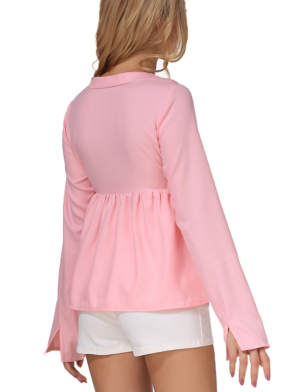 Accessory:No Overview:(1)V Neck(2)Long Sleeve(3)Stylish Detail in Tile Measurement | Size(cm) | Length | Bust | Sleeve | Shoulder | | S | 57 | 84 | 63 | 34 | | M | 58 | 88 | 64 | 35 | | L | 59 | 92 | 65 | 36 | | XL | 60 | 96 | 66 | 37 |