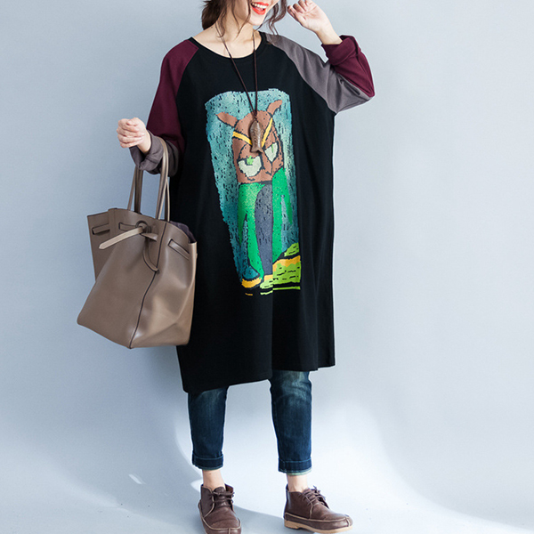 Accessory:NoOverview:(1)Cotton Blend (2)Loose (3)Patchwork Fit&Sizing:Non-StretchableDetail In Tile Measurement | Size(Cm) | Length | Shoulder | Bust | Sleeve | | One Size | 96 | 68 | 132 | 68 |
