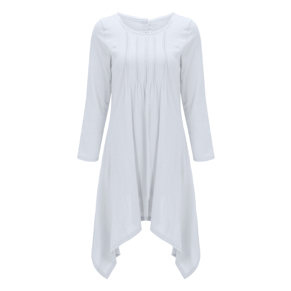 Accessory:No Overview:(1)Linen(2)Asymmetrical(3)CasualFit&Sizing:Non-StretchableDetail In Tile Measurement | Size(Cm) | Length | Bust | Waist | | S | 106 | 92 | 90 | | M | 106.5 | 96 | 94 | | L | 107 | 100 | 98 | | XL | 107.5 | 104 | 102 | | 2XL | 108 | 108 | 106 | | 3XL | 108.5 | 112 | 110 | | 4XL | 109 | 116 | 114 |