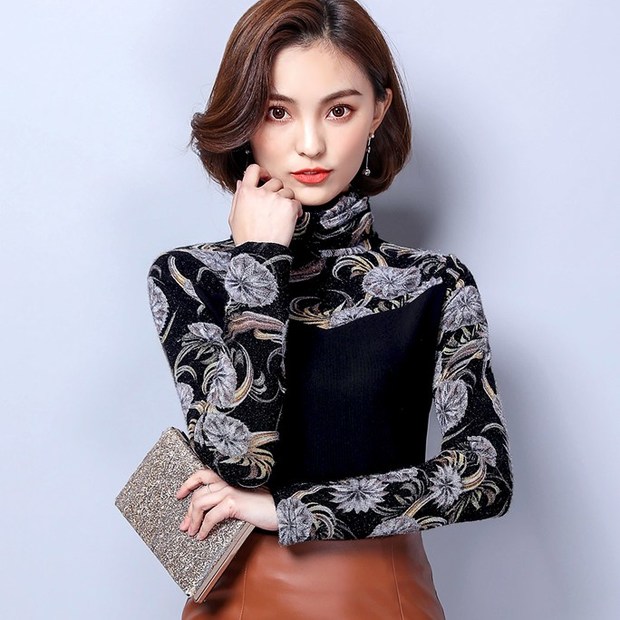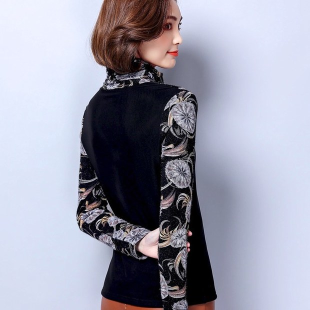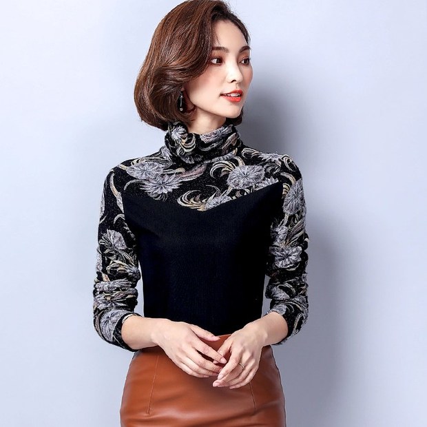 Easy Match High Neck Patchwork Printing Shirt