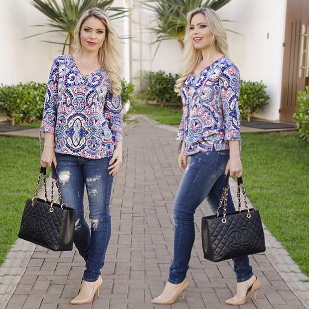 Accessory:No Overview:(1)V Neck(2)3/4 Sleeve(3)Stylish Detail in Tile Measurement | Size(cm) | Length | Bust | | S | 59 | 85-88 | | M | 60 | 90-93 | | L | 61 | 97-100 | | XL | 62 | 104-109 |