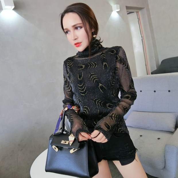Feather Turtle Neck See-through Gauze T Shirt Design