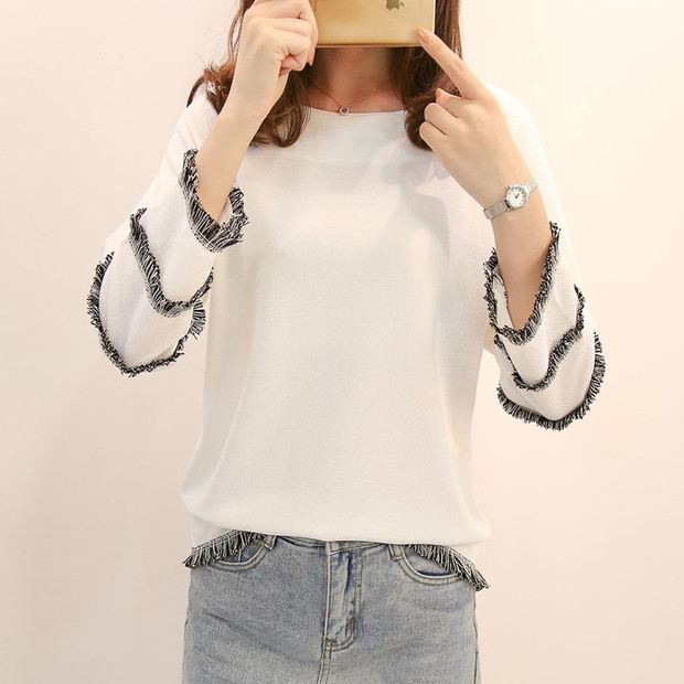 Accessory:No Overview:(1)O Neck(2)Long Sleeve(3)Stylish Detail in Tile Measurement | Size(cm) | Length | Bust | Sleeve | | S | 58 | 94 | 53 | | M | 59 | 98 | 54 | | L | 60 | 102 | 55 | | XL | 61 | 106 | 56 | | 2XL | 62 | 110 | 57 |