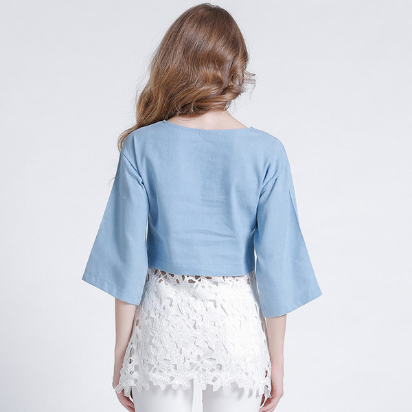 Accessory:No Overview:(1)O Neck(2)3/4 Sleeve(3)Stylish Detail in Tile Measurement | Size(cm) | Length | Bust | Sleeve | Shoulder | | S | 69 | 93 | 35 | 51 | | M | 70 | 97 | 36 | 52 | | L | 71 | 101 | 37 | 53 | | XL | 72 | 105 | 38 | 54 |