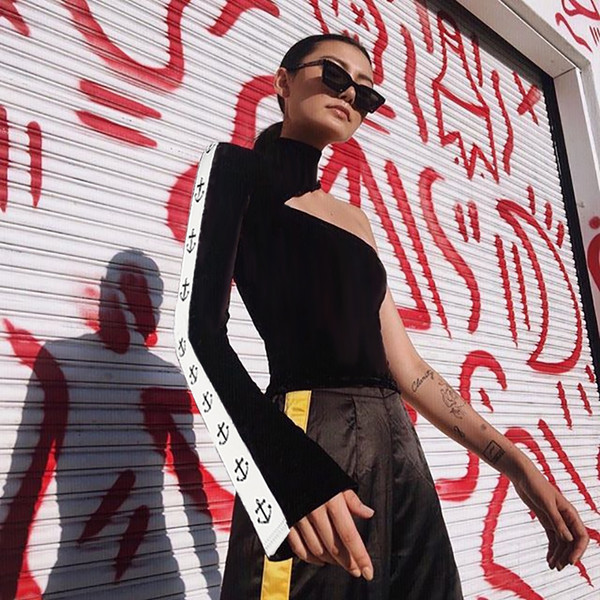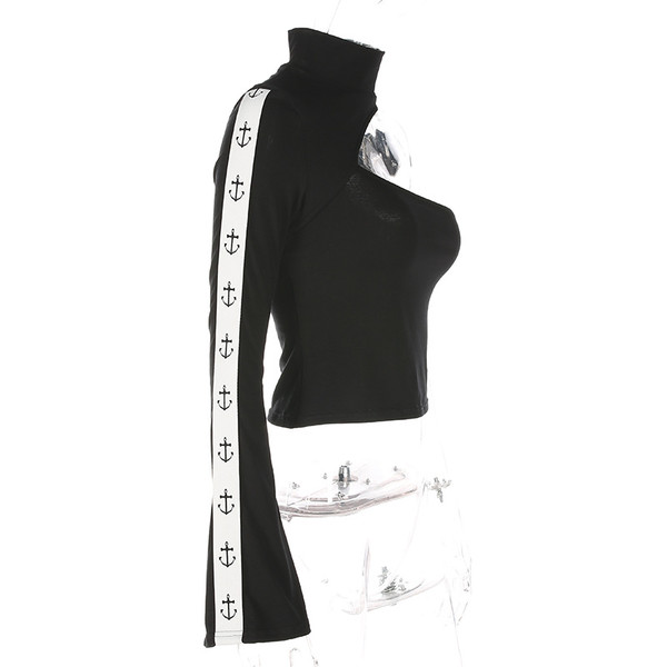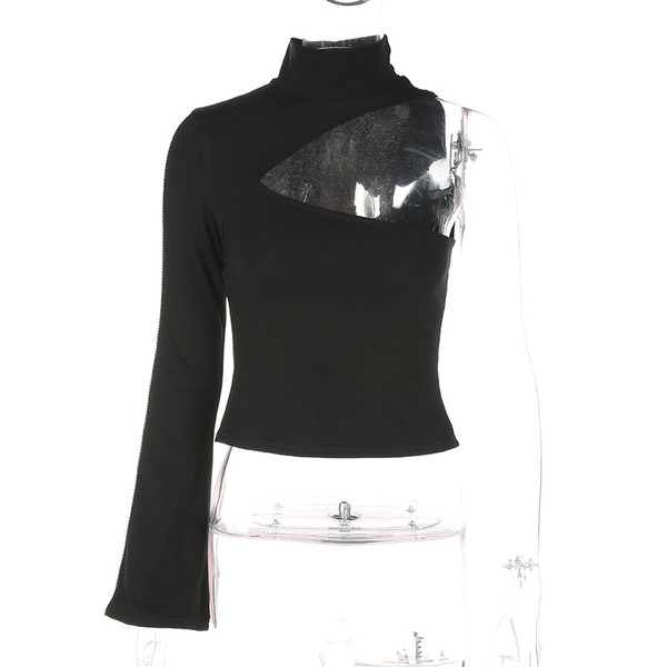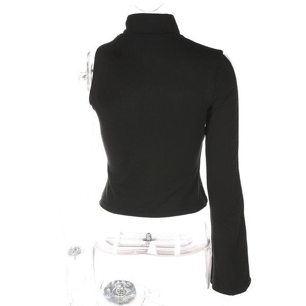 Accessory: NoOverview:(1) One Shoulder(2) Contrast Color(3) PulloverFit & Sizing:Little StretchableDetail in Tile Measurement | Size(cm) | Bust | Length | Sleeve | Shoulder | Waist | | S | 74 | 48 | 62.5 | 33 | 61 | | M | 78 | 49 | 63.5 | 34 | 65 | | L | 82 | 50 | 64.5 | 35 | 69 |