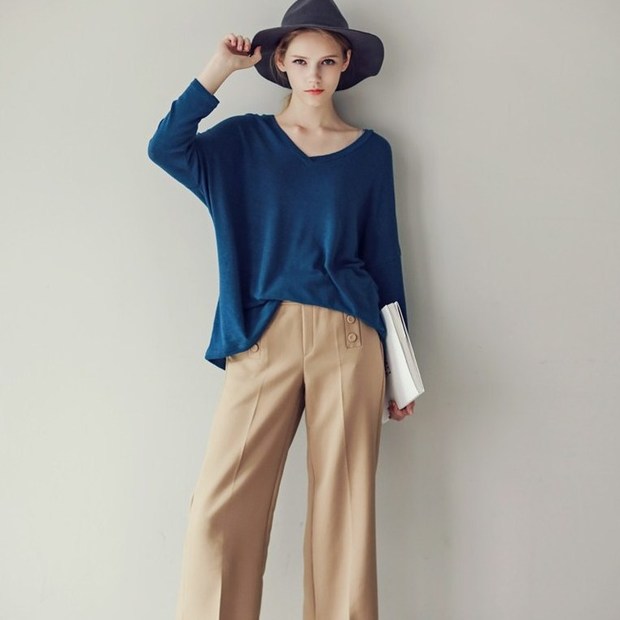 Accessory: NoOverview:(1) Mid Waist(2) Loose Fit(3) Casual Long Sleeve TeeFit & Sizing:Little StretchableDetail in Tile Measurement | Size(cm) | Bust | Length | Sleeve | Waist | | One Size | 118 | 68 | 61 | 104 |
