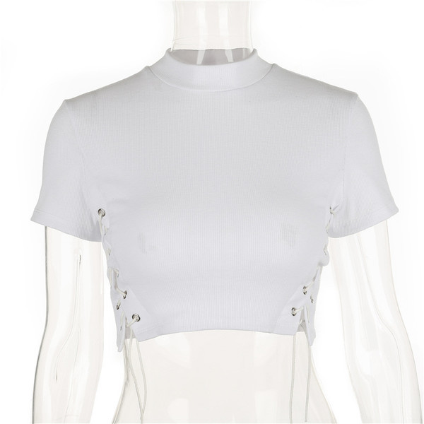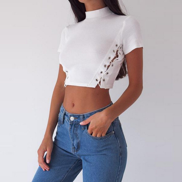 Accessory: NoOverview:(1) Polyester Spandex(2) Slim Fit(3) Sexy T-shirtFit & Sizing: Little StretchableDetail in Tile Measurement | Size(cm) | Bust | Length | Shoulder | Sleeve | | S | 72 | 36 | 33 | 14 | | M | 76 | 37 | 34 | 15 | | L | 80 | 38 | 35 | 16 |